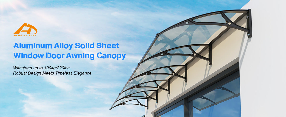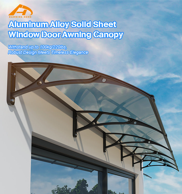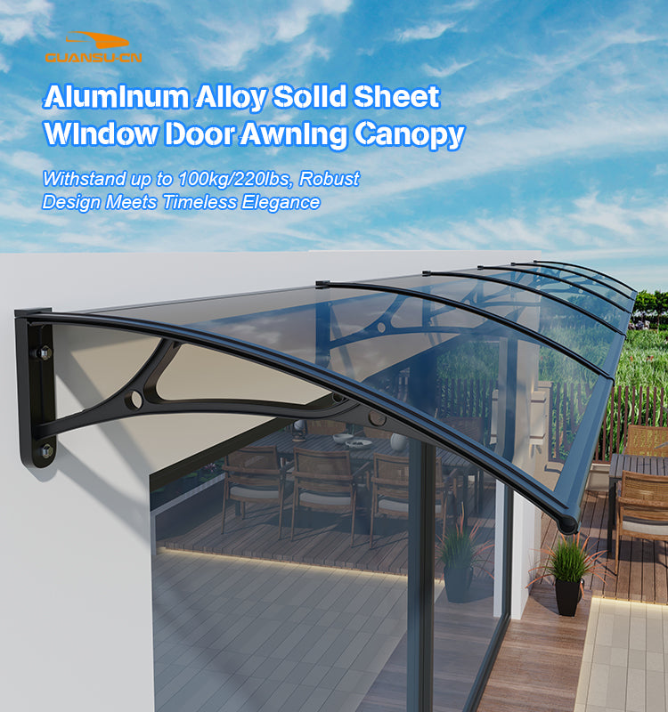 GUANSU-CN Fenstermarkise, Türvordach aus Aluminiumlegierung, Terrassenüberdachung aus massivem Polycarbonatblech, LSF 50+, Schutz vor Schnee, UV, Regen und Sonnenschutz