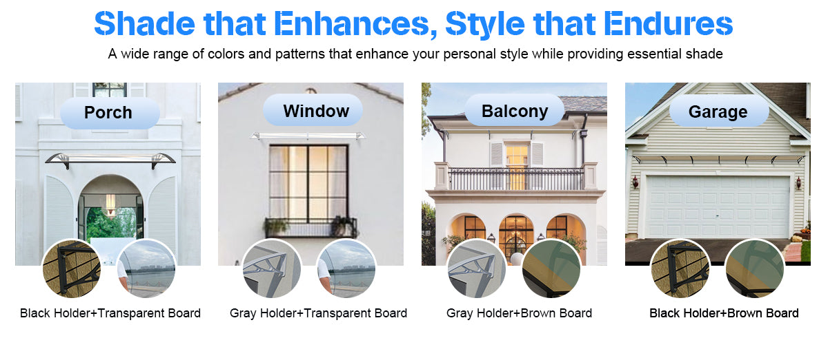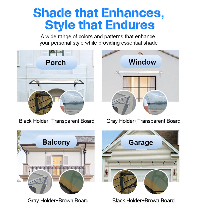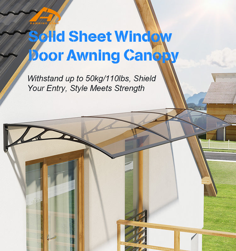 GUANSU-CN Tenda da Sole per Finestre e Porte, Copertura per Patio in Policarbonato Solido con Staffa in Plastica, Barre di Fissaggio in Alluminio per Persiane Solari, Protezione UV, Pioggia, Neve