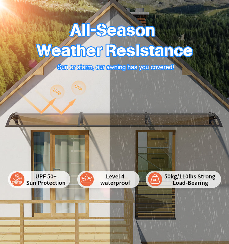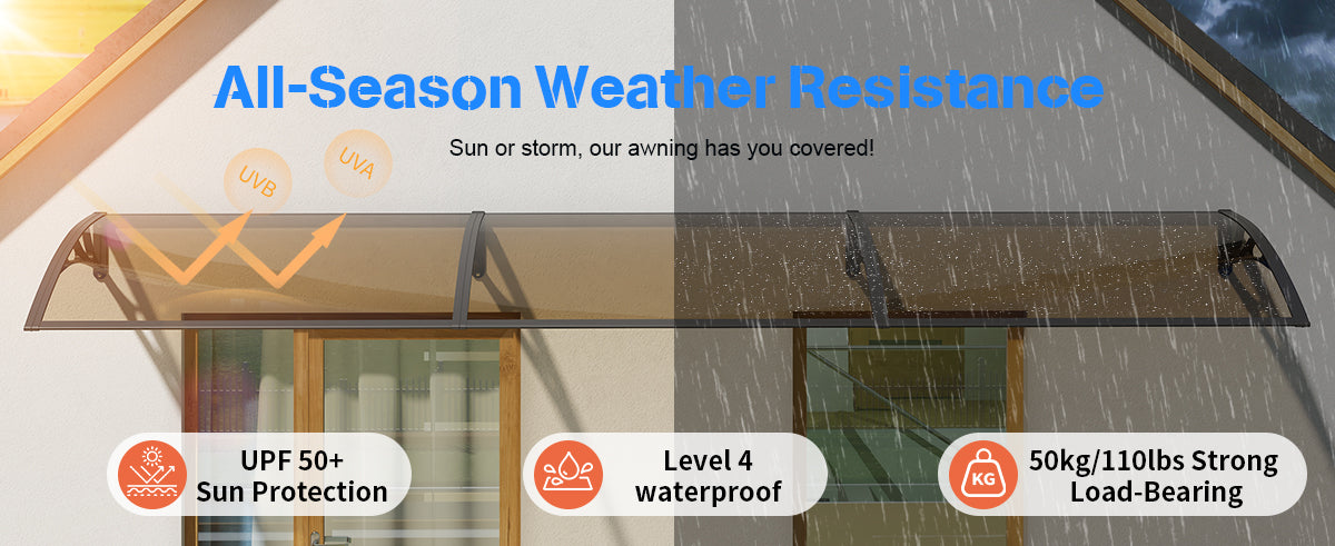 Yes. This awning withstands a wide range of weather—from intense sun and UV exposure to rain, snow, and hail, without warping or yellowing.